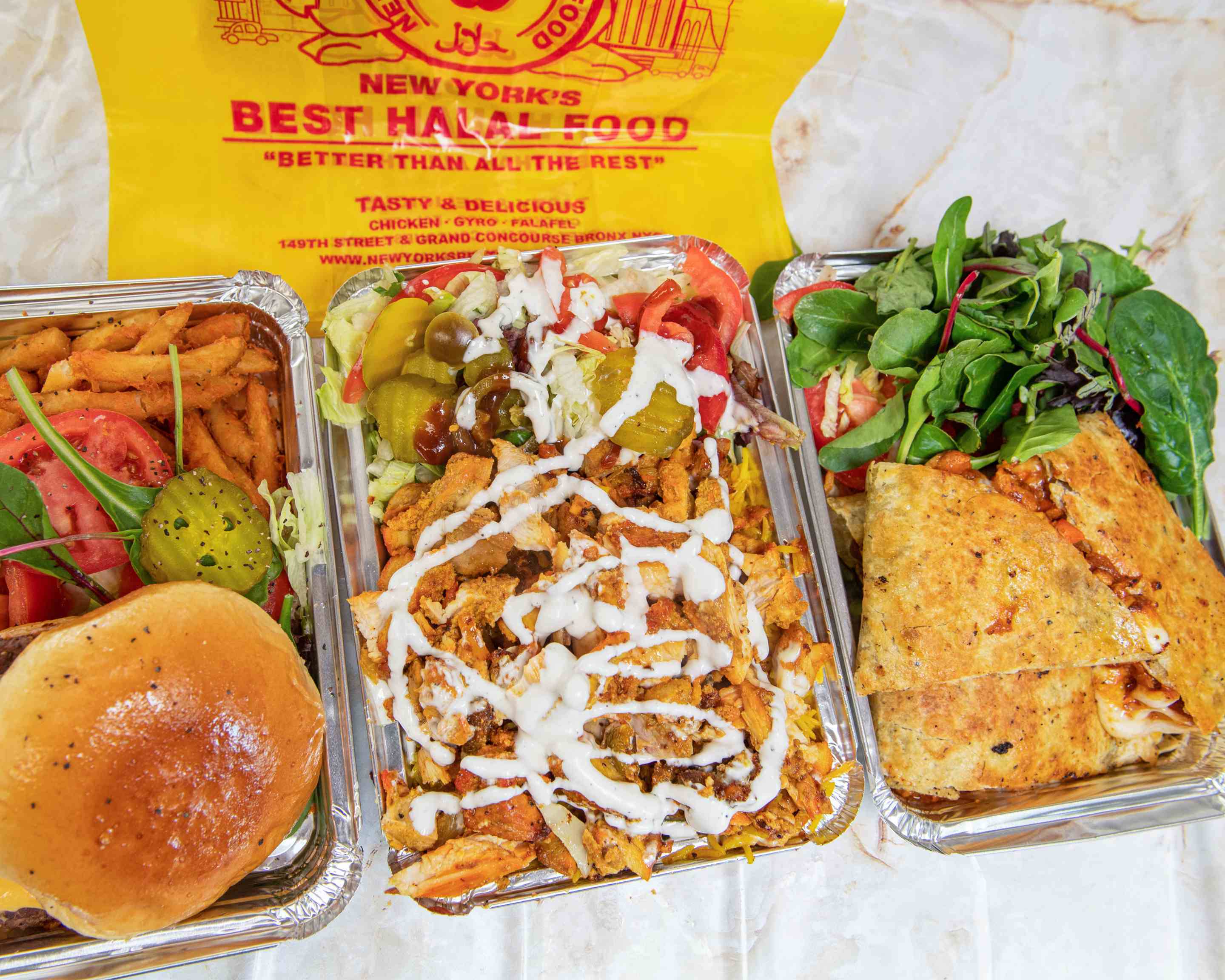 * The Halal Guys in New York City, a popular food cart turned restaurant, serving halal Middle Eastern cuisine.