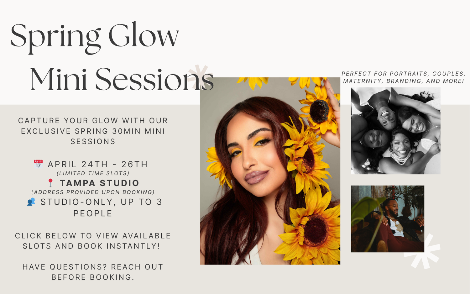 Mini sessions offer several benefits for couples, families, and individuals, including:
